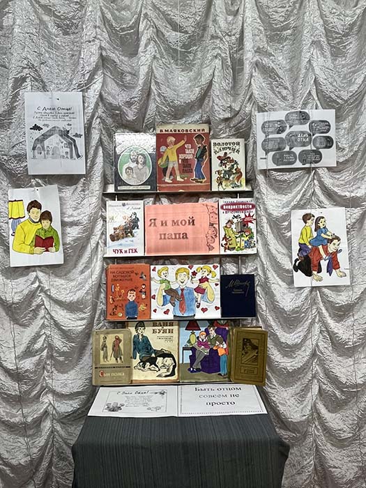 Для ребят была оформлена тематическая книжная выставка «Я и мой папа», где были представлены книги, в которых главный герой и пример для подражания – отец.