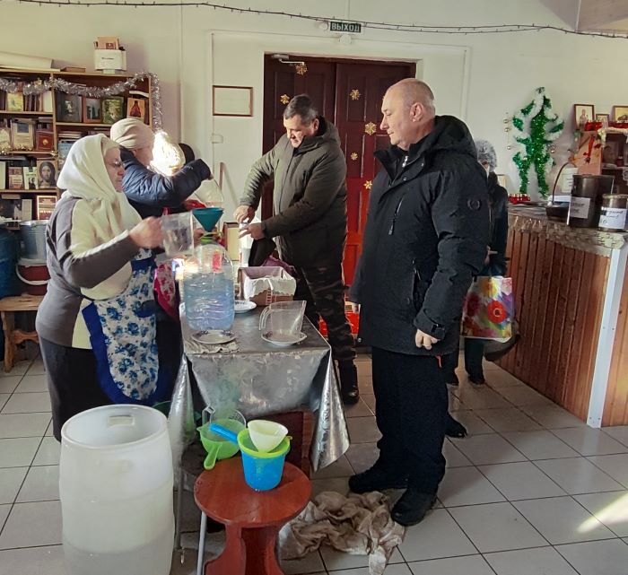 Отец Ярослав поздравил присутствующих гостей с праздником Крещения Господня и рассказал о крещении Иисуса Христа в реке Иордан. Он подчеркнул, что этот момент стал знаковым событием в жизни Спасителя и важным символом для всех верующих. Вода Иордана олицетворяет очищение и обновление, а сам обряд крещения стал началом служения Христа на Земле.