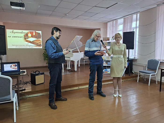 В рамках торжественного мероприятия участников литобъединения поздравила начальник отдела культуры Администрации муниципального образования «Руднянский  муниципальный округ» Смоленской области Валентина Дмитриевна Виноградова. Она зачитала приветственный адрес от Главы Администрации муниципального образования «Руднянский  муниципальный округ» Смоленской области Ю. И. Ивашкина и вручила Благодарственные письма «современниковцам»: руководителю литобъединения Виктору Кудрявцеву, активным участникам – Виктору Седнёву, Ольге Млодиковой, Ирине Науменковой, Андрею Иванову, Алексею Леоненкову, Елене Субботиной, Оксане Бабурченковой, Елене Шенькиной и самым юным участницам «Современника» – Маргарите Кондаковой и Наталье Шенькиной.