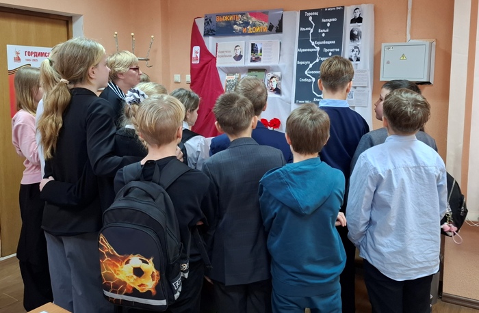 Час мужества был посвящен героическому подвигу трех смоленских девушек, которые летом 1942 года совершили спасательную операцию «Дети». В ходе мероприятия проходила презентация тематической выставки «Выжить и дойти», приуроченная ко Дню Героев Отечества. Присутствующим были представлены информационное издания, стихотворение Светланы Захаровой «Операция «Дети» и книги. Следующим блоком был представлен маршрут пути, фотографии Матрёны Вольской, Варвары Поляковой и Екатерины Громовой. Выставка включает в себя интерактивный блок, на котором располагаются карточки с QR-кодами.