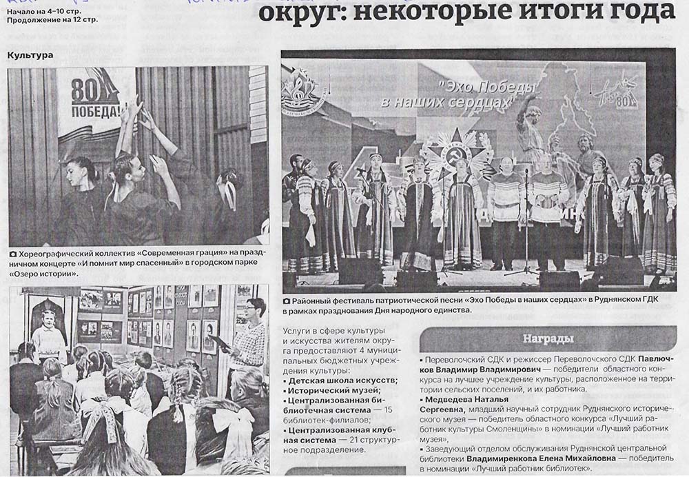 Отчёт Главы МО «Руднянский муниципальный округ» Смоленской области Юрия Ивановича Ивашкина за 2025 год. Культура