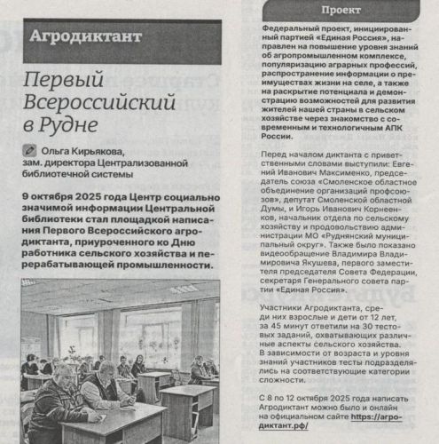 Источник: // Руднянский голос. – 2025. – 23 окт. (№ 43). – С. 9.