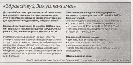 Источник: // Руднянский голос. – 2025. – 27 нояб. (№ 48). – С. 12.